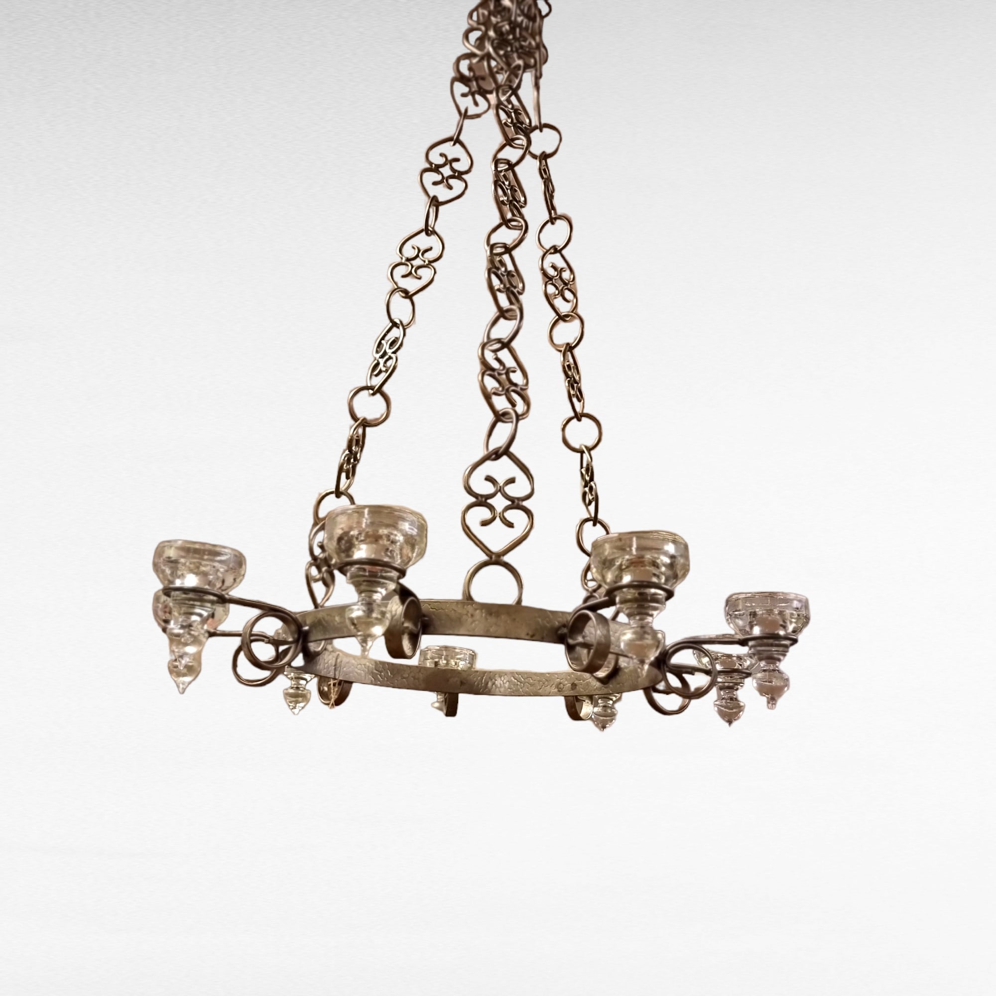 Taklampa i tenn och glas. Till levande ljus. (ingen el)
